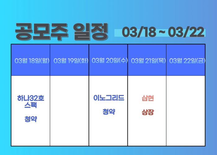 03/18 ~ 03/22 공모주 일정입니다.
