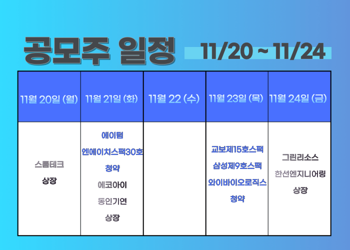 11/20 ~ 11/24 공모주 일정입니다.