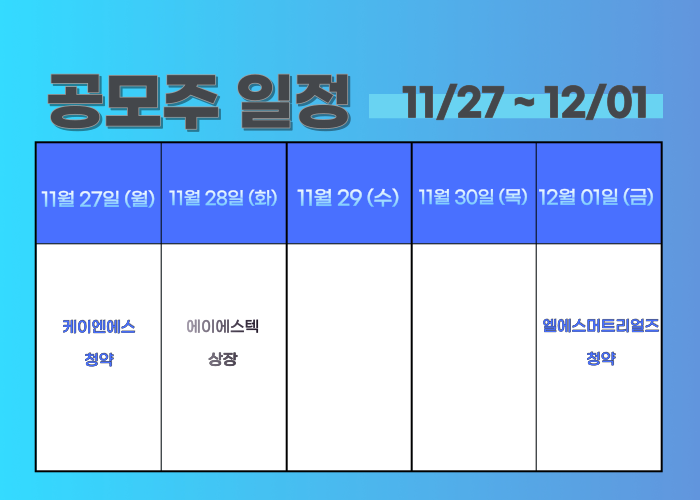 11/27~ 12/01 공모주 일정입니다.