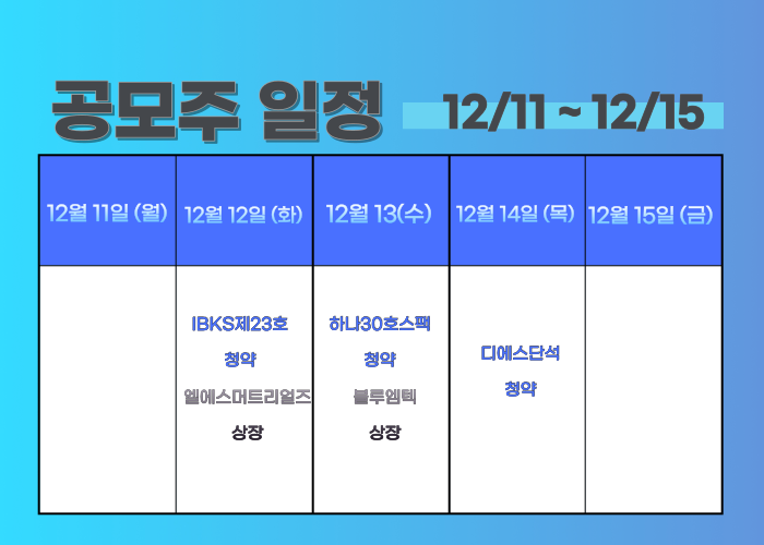 공모주 청약 일정: 2023.12.12~2023.12.13