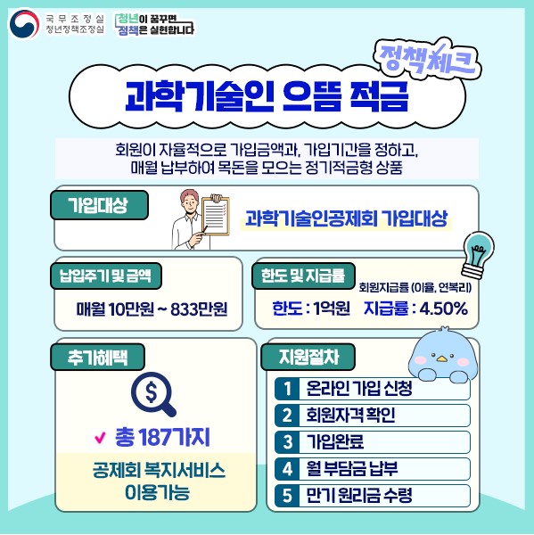 ๊ณผํ๊ธฐ์ ์ธ๊ณต์ ํ๋ ๋ค์ํ ๋ถ์ผ์ ๊ณผํ๊ธฐ์ ์ธ๋ค์ ์ง์ํ๊ธฐ ์ํด ์ฐ๋ณต๋ฆฌ 4.50%์ ์ ๊ธฐ์ ๊ธ์ํ์ธ