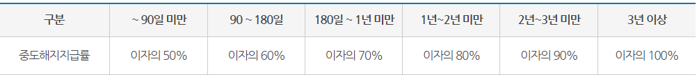 - ํ์ ์ฌ๋ง์ ์ํ ์ค๋ํด์ง ์ ์ด์๋ ์ฌ๋ง์ผ๋ถํฐ 30์ผ๊น์ง๋ ํ์์ง๊ธ๋ฅ ์ ์ ์ฉํ๊ณ , ๊ทธ ์ดํ ์ง๊ธ์ผ๊น์ง๋ ๊ณต์ ํ ํด์ง์ฐ๊ธ ํ๊ธ์ฑ์์ฐ์ง๊ธ๋ฅ ( 22.11.1๋ถํฐ 2.0% )๋ฅผ ์ผํ ๊ณ์ฐํ์ฌ ์ ์ฉ