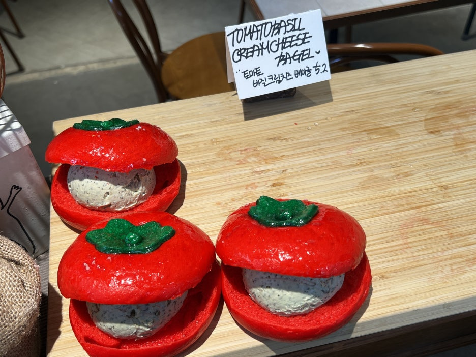 "Tomato Basil Cream Cheese Bagel"์ ๋ ํนํ ๋น์ฃผ์ผ๊ณผ ๋ง์ ๋์์ ๊ฐ์ง๊ณ ์์ด์ ์ฌ๋ฌ ๋ฒ ์ฐพ๊ณ ์ถ์ด์ง๋ ๋ฉ๋ด์์ด์.