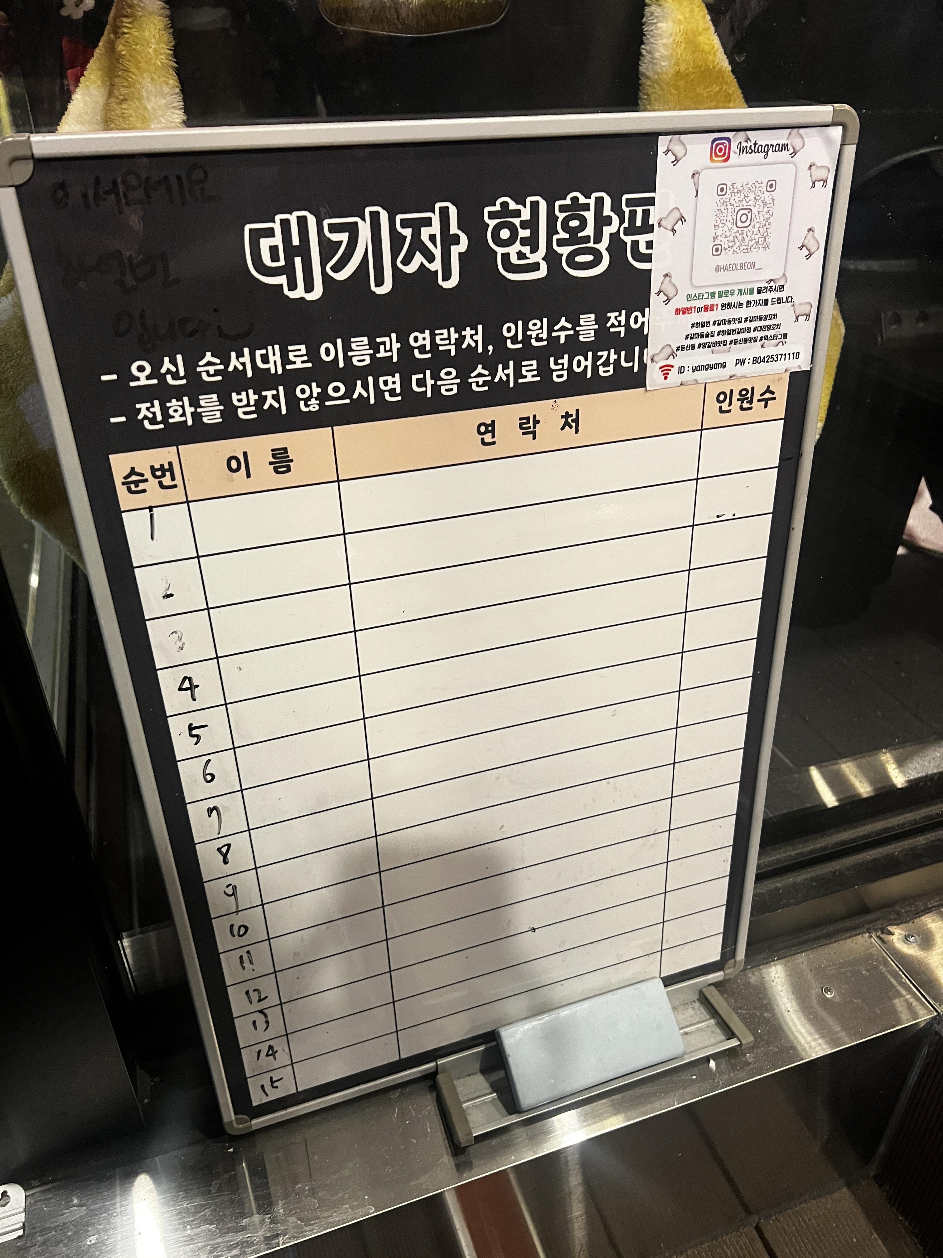 λŒ€κΈ°νŒμ΄ μžˆλŠ”κ±Έλ‘œ 보아 맛집인가!? ν–ˆμŠ΅λ‹ˆλ‹€. 7μ‹œ 전에 κ°”λŠ”λ°, λ”± ν•œμžλ¦¬ λ‚¨μ•„μ„œ λ“€μ–΄κ°”μ–΄μš”!