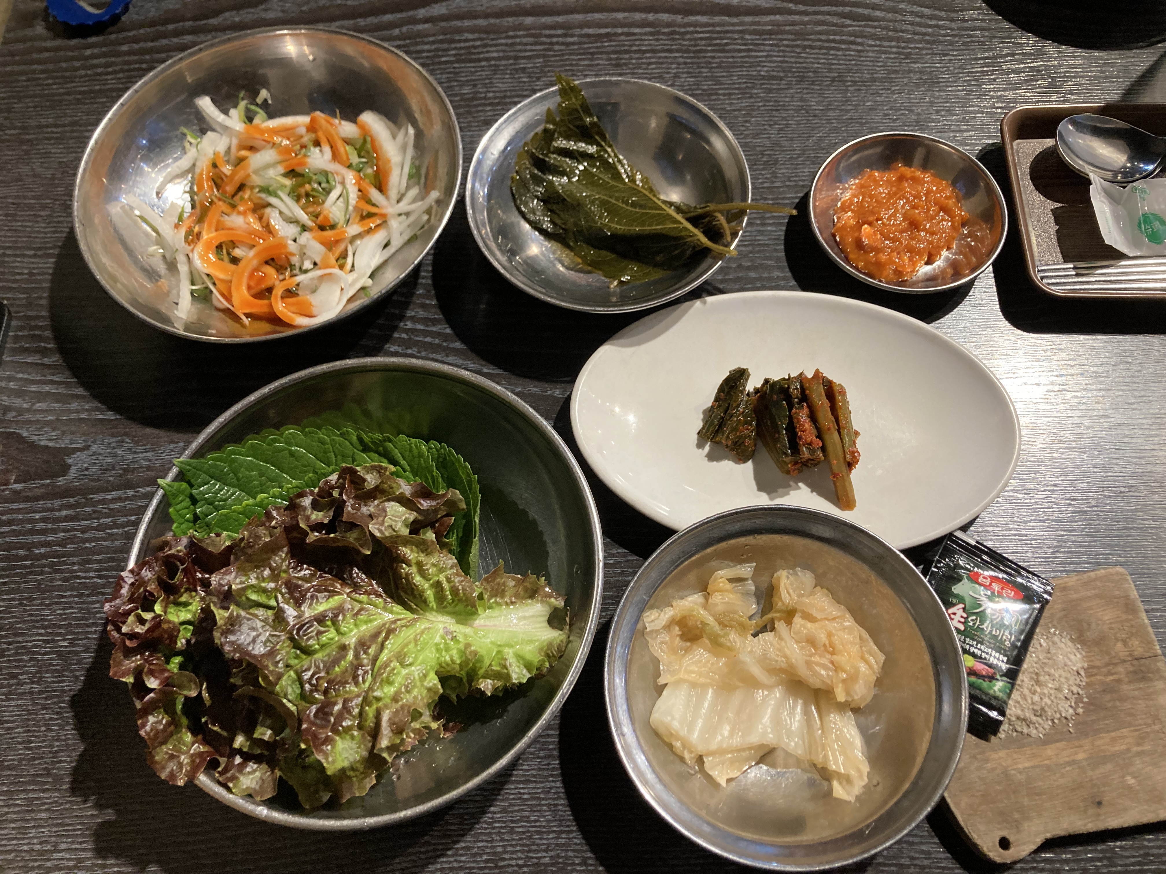 ์ƒ์˜ค๊ฒน์‚ด 2์ธ๋ถ„ ์‹œ์ผฐ์Šต๋‹ˆ๋‹ค! ๋ฐ‘๋ฐ˜์ฐฌ์ด ํ‘ธ์งํ•˜๊ฒŒ ๋‚˜์™”์–ด์š”.