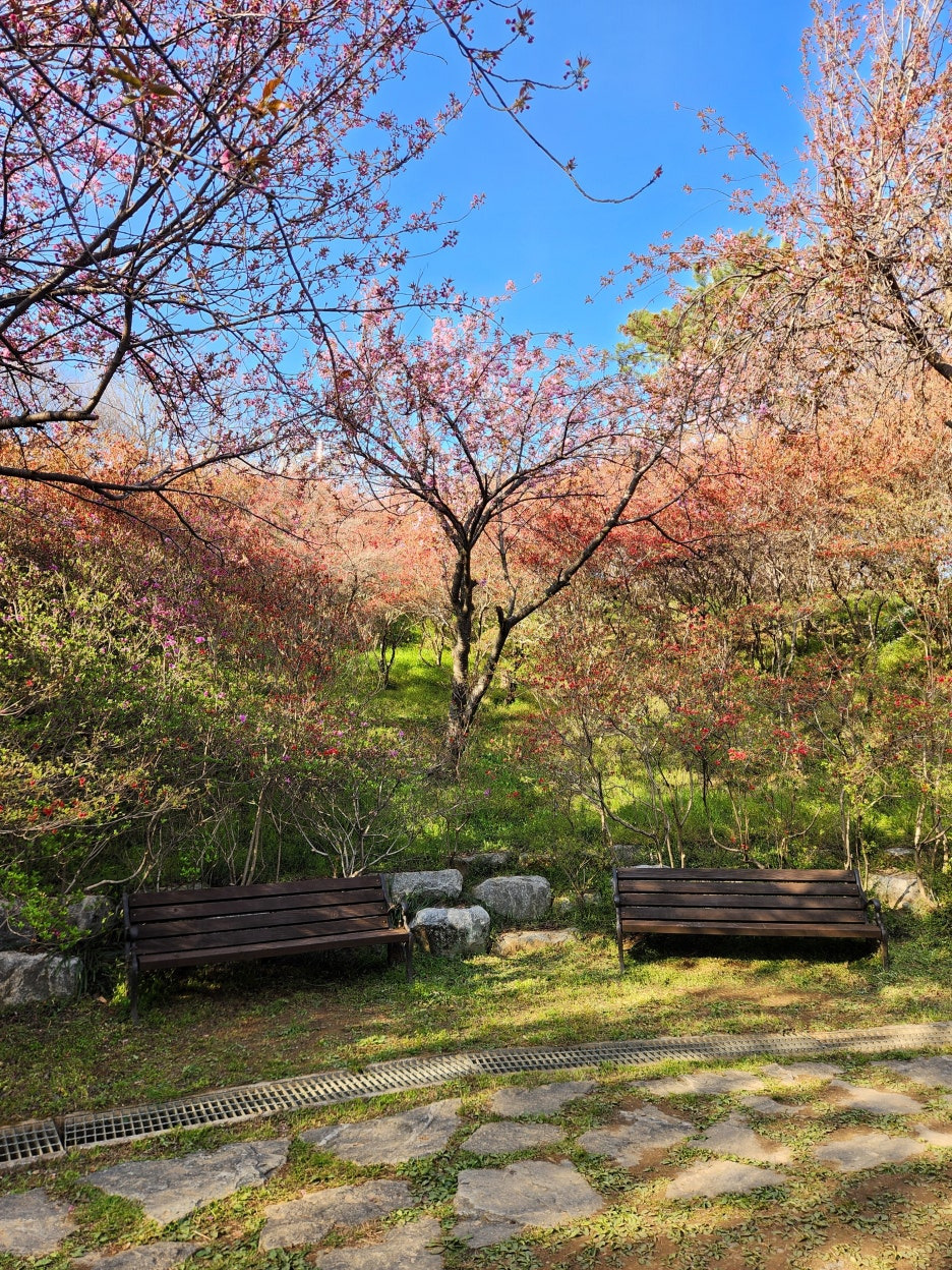 ์ฐ์ฑ ๋ก๋ฅผ ๋ฐ๋ผ ๊ฑท๋ค ๋ณด๋ฉด ๊ณณ๊ณณ์ ๋ง๋ จ๋ ๋ฒค์น์์ ์ ์ ํด์์ ์ทจํ๋ฉฐ ์ฃผ๋ณ ๊ฒฝ์น๋ฅผ ๋ง๋ฝํ ์ ์์ต๋๋ค.