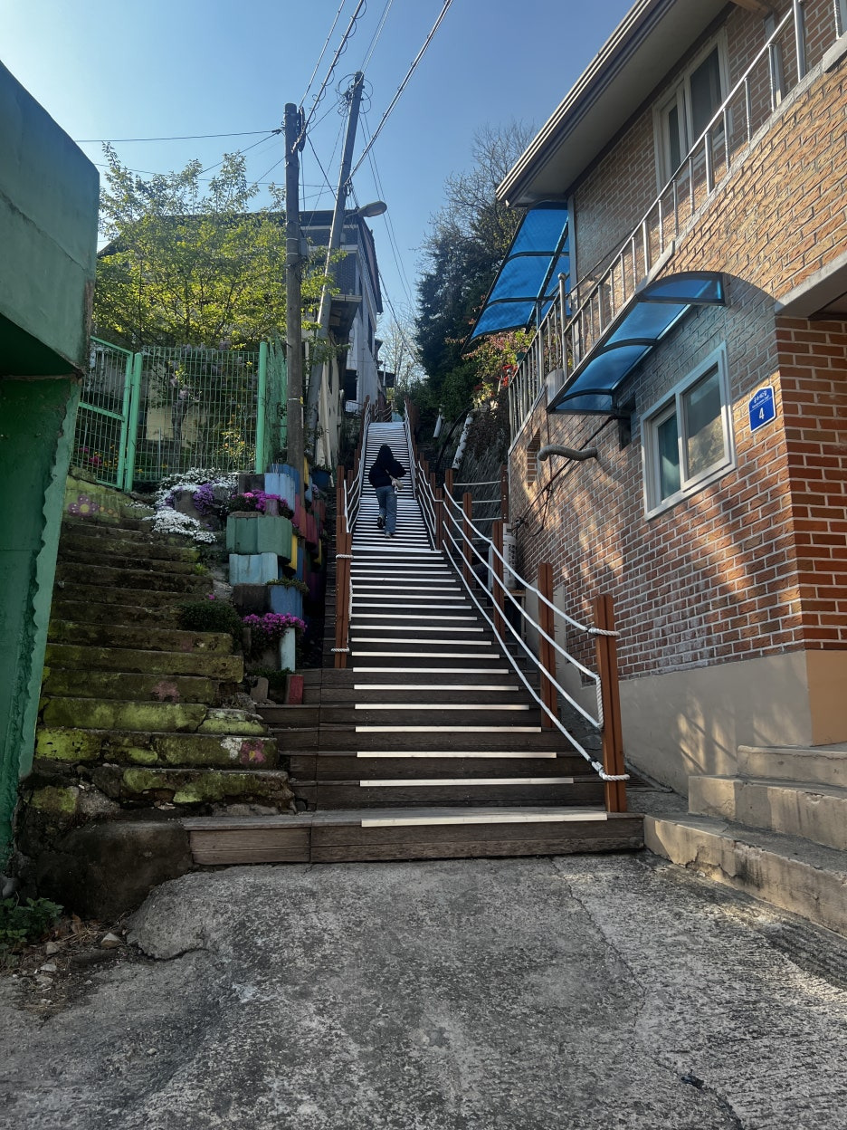 ๋ณด์ด๋ ์ฝ๊ฐ ๊ฐํ๋ฅธ ๊ณ๋จ๊ธธ์ ์ ํํ์ด์!
