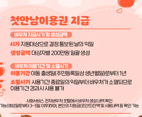 ๋ณต์ง๋ก ์จ๋ผ์ธ์ ์ฒญ ๊ฒฝ๋ก : ๋ณต์ง๋ก ๋ก๊ทธ์ธ > ์๋น์ค ์ ์ฒญ > ๋ณต์ง์๋น์ค ์ ์ฒญ > ๋ณต์ง๊ธ์ฌ ์ ์ฒญ > ์์ ์ถ์ฐ > ์ฒซ๋ง๋จ์ด์ฉ๊ถ