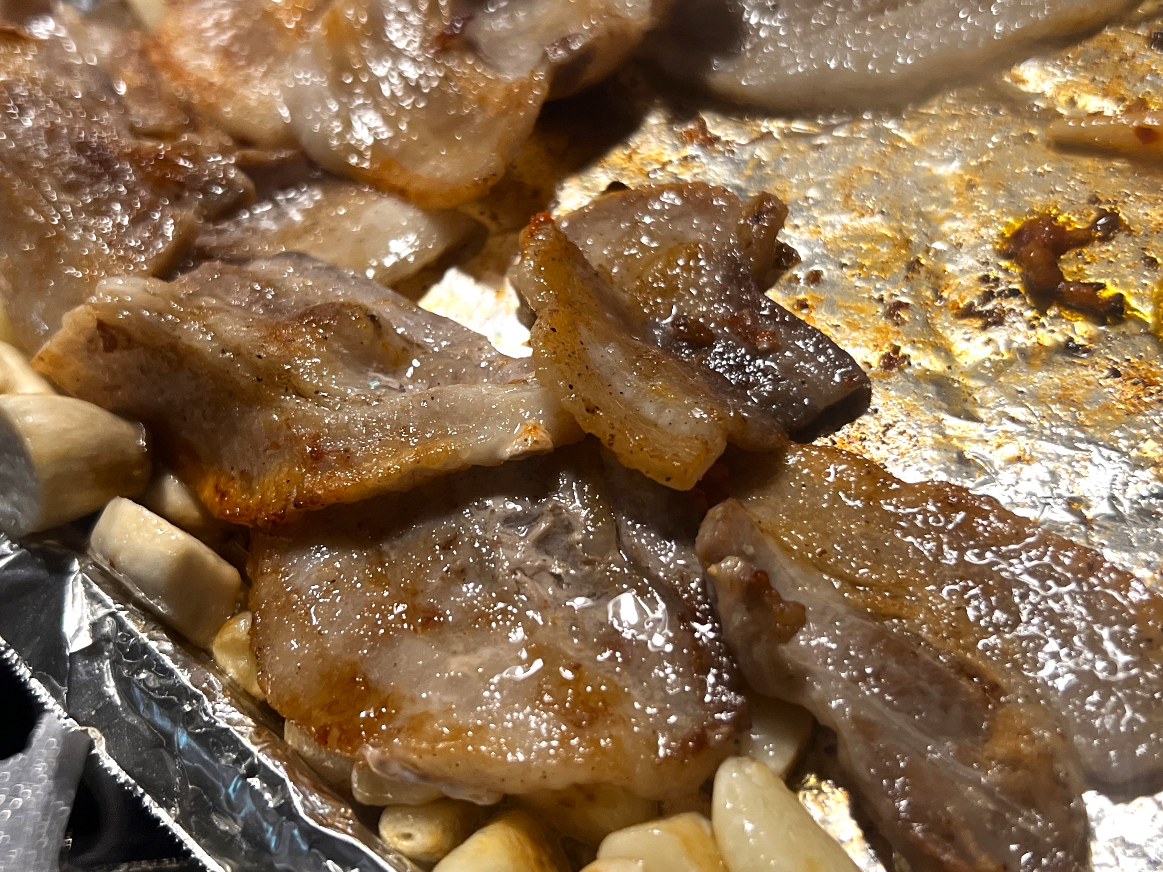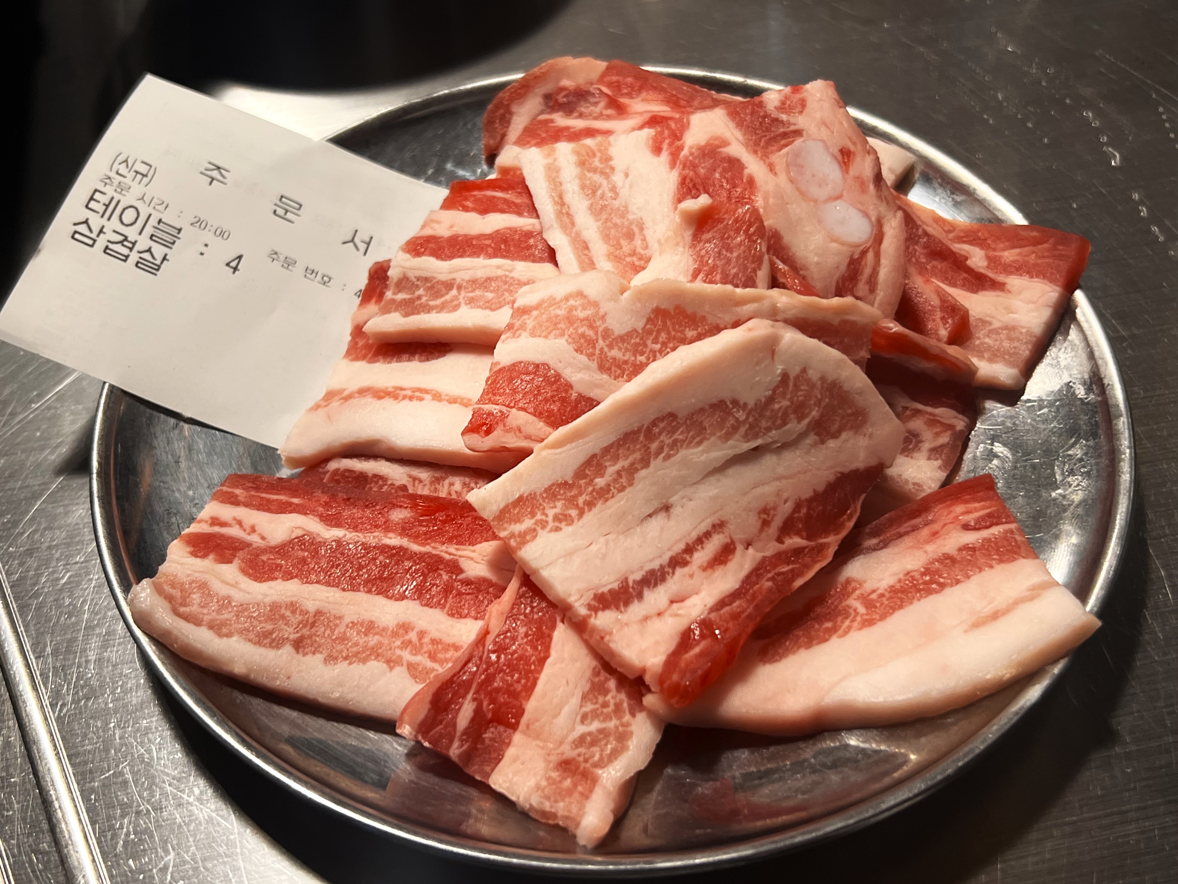 ์‚ผ๊ฒน์‚ด์€ ๊ตญ๋‚ด์‚ฐ์ด์—ˆ๊ณ , ์–‡์€ ๊ณ ๊ธฐ๋ผ์„œ ๊ธˆ๋ฐฉ ์ต์—ˆ์Šต๋‹ˆ๋‹ค.