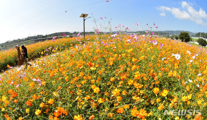 ํ์๊ฒฝ๊ด๋์ ๋จ์ง๋ ํ์๋ฆฌ ๋ฌ๋ชฉ๋จ์ง์ ํ์ ๋๊ฒฝ๋ก๋ฅผ ์๋ ์ง๋ฆ๊ธธ ์ญํ ์ ํ๋ ๋๋ถ์ ์๊ต ์์ ์กฐ์ฑ๋ ๊ณณ์ ๋๋ค. ์ด๊ณณ์ ๊ณ์ ๋ง๋ค ์ ์ฑ๊ฝ, ์ฅ๋ฏธ, ํด๋ฐ๋ผ๊ธฐ, ์นธ๋ ๊ฝ ๋ฑ์ ์ฌ์ด๋์ ๋ค์ํ ๊ฝ๋ค์ ๋ง๋๋ณผ ์ ์๋๋ฐ์. ํนํ, ๊ฐ์ ๋ํ ๊ฝ ์ค ํ๋์ธ ๋ถํ๋น ์ฝ์ค๋ชจ์ค๊ฐ ํผ์ด์์ด ์๋ฆ๋ค์ด ํ๊ฒฝ์ ๊ฐ์ํ๋ฉฐ ์์ ์ฌ์ง์ ์ฐ์ ์ ์์ต๋๋ค. ์์ ํ๋ฅด๋ ๊ธํธ๊ฐ์ ๋ฐ๋ผ ์ฒ์ฒํ ๊ฑฐ๋๋ฉฐ ๊ฝ ๋๋ค์ด๋ฅผ ์ฆ๊ฒจ๋ณด์ธ์.