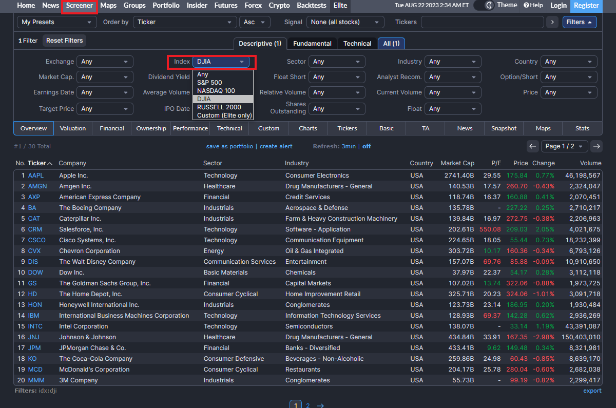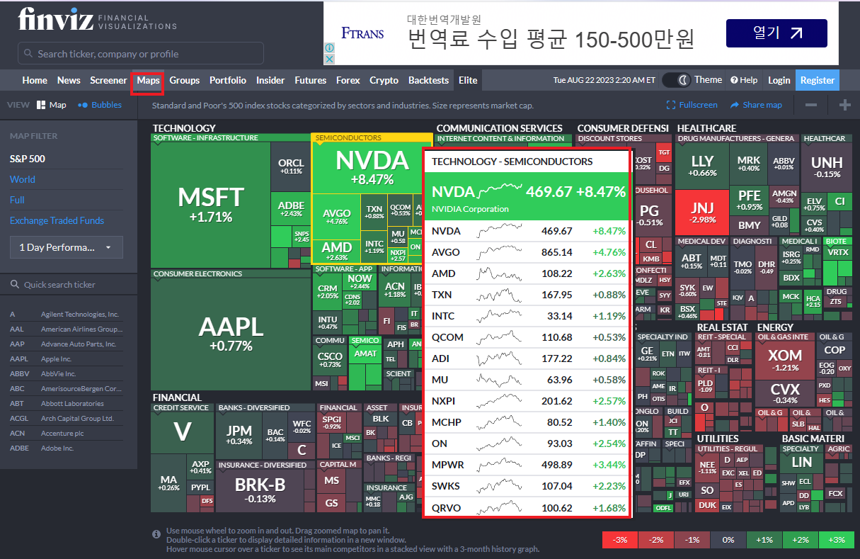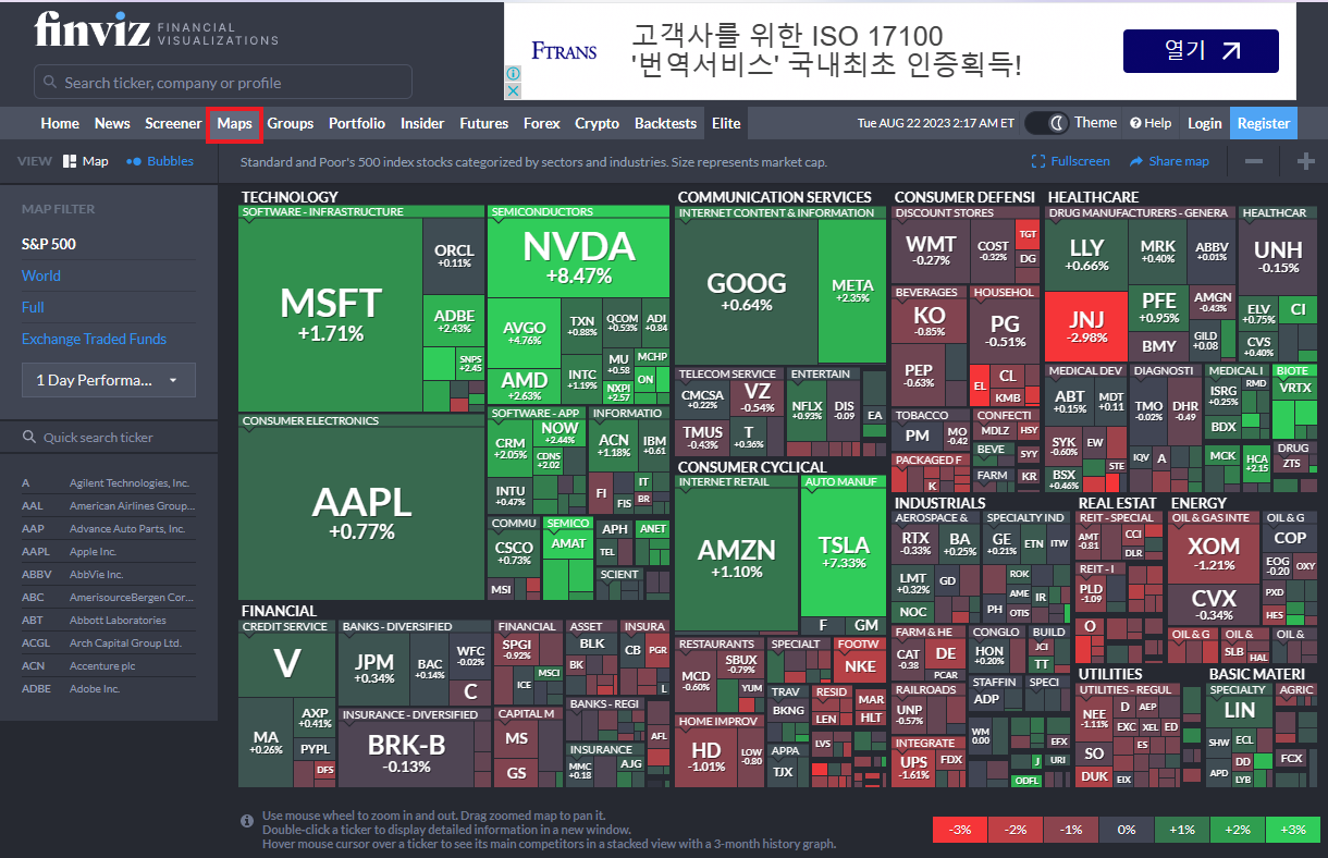 Finviz.com ์ ๋ํ์ฃผ, ์ํ์ฃผ ๋ฐ์ดํฐ ๊ฐ์ฅ ํธํ๊ฒ, ํ๋์ ๋ณผ ์ ์๋ ๊ณณ์