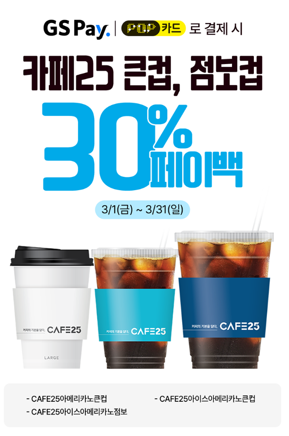 โฆ GS Pay | POP์นด๋“œ ๊ฒฐ์ œ ์‹œ, ์นดํŽ˜๋ผ๋–ผ 1+1, ์นดํŽ˜25 ํฐ์ปต, ์ ๋ณด์ปต 30% ํŽ˜์ด๋ฐฑ