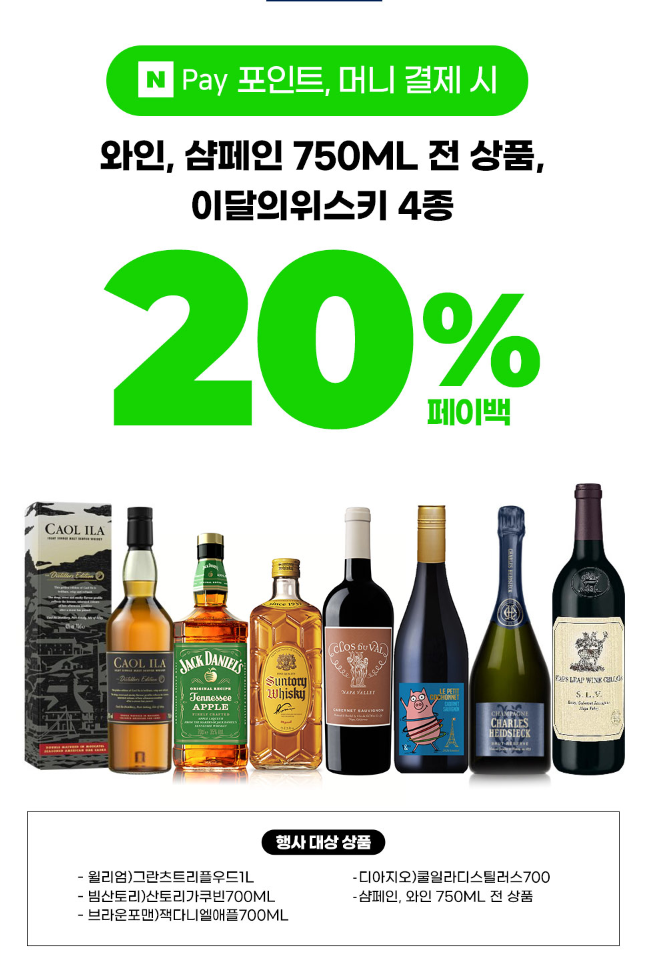 ์์ธ, ์ดํ์ธ 750ML ์ ์ํ ์์คํค 4์ข 20% ํ์ด๋ฐฑ
