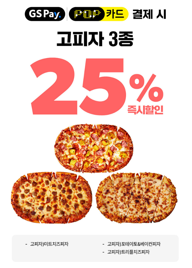 โฆ GS Pay / POP์นด๋๋ก ๊ฒฐ์ ์, ๊ณ ํผ์ 3์ข 25% ํ ์ธ
