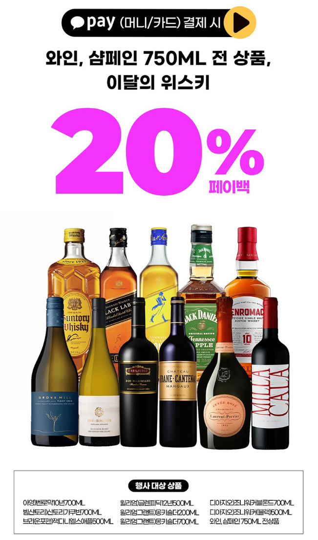 ์์ธ, ์ดํ์ธ 750ML ์ ์ํ, ์ด๋ฌ์ ์์คํค 20% ํ์ด๋ฐฑ