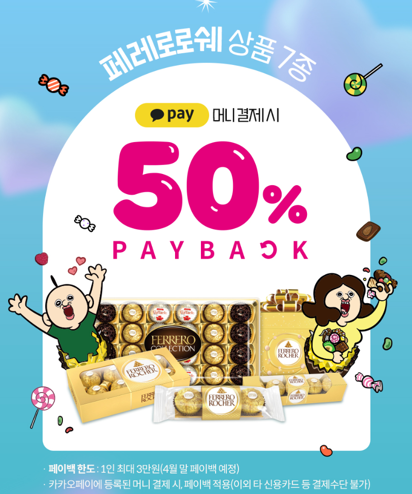 ์นด์นด์คPAY ๋จธ๋๊ฒฐ์ ์, ํ์ดํธ๋ฐ์ด 50% ํ ์ธ(ํ๋ ๋ก๋ก์ 7์ข )