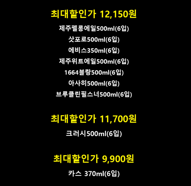๋ชฉ๊ธํ ์ผ ํ๋์นด๋ ๊ฒฐ์ ์, ๋งฅ์ฃผ ๋ฒ๋คํ ์ธ / ์์ฃผ 2+1 ์ถ๊ฐ 10% ํ ์ธ |