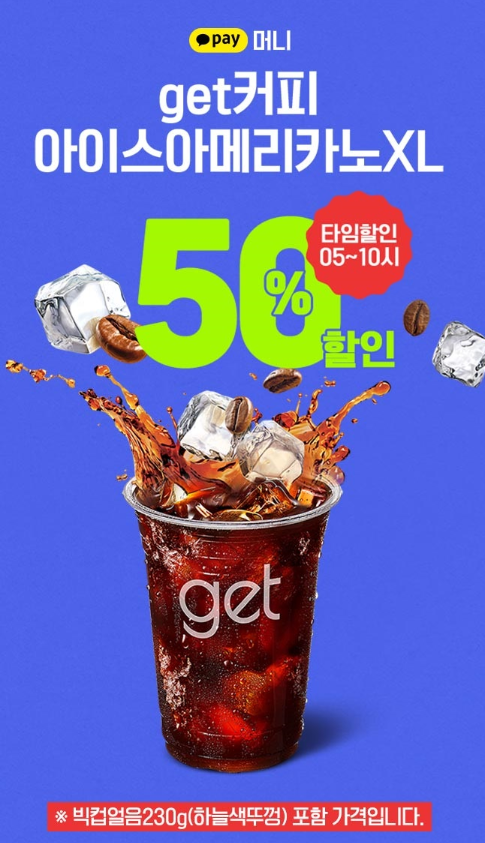 ์นด์นด์ค๋จธ๋ ๊ฒฐ์ ์, get์ปคํผ ์์ด์ค์๋ฉ๋ฆฌ์นด๋ ธ XL 500์ ํ ์ธ(ํ์ํ ์ธ 05~10์)