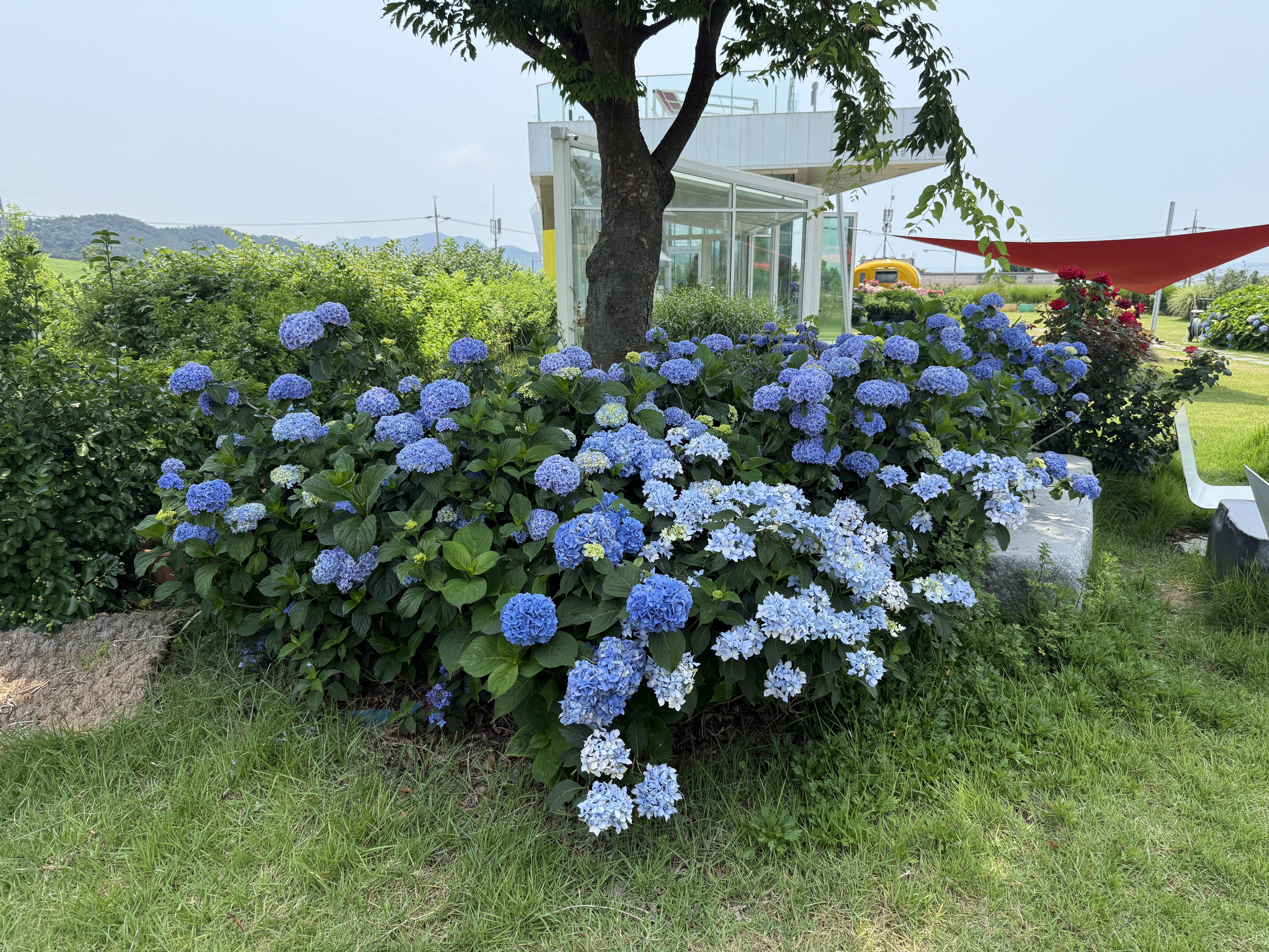 - ์๊ตญ (Hydrangea): ์ฌ๋ฆ ์์ฆ์๋ ํ์ค๋ฌ์ด ์๊ตญ๋ค์ด ์ ์์ ์๋ฆ๋ต๊ฒ ๋ฌผ๋ค์ ๋๋ค. ํ์ฑํ๊ณ ๋ค์ฑ๋ก์ด ์์์ ์๊ตญ์ ์ฌ๋ฆ๋ ์ ์ฑ๊ทธ๋ฌ์์ ๋ํด์ฃผ์ฃ .